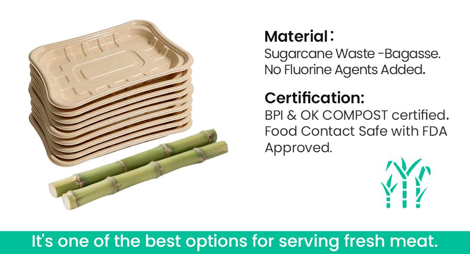 1820ml 9×7×H1.8" 25±2g Bagasse Biodegradable Fresh Meat Tray